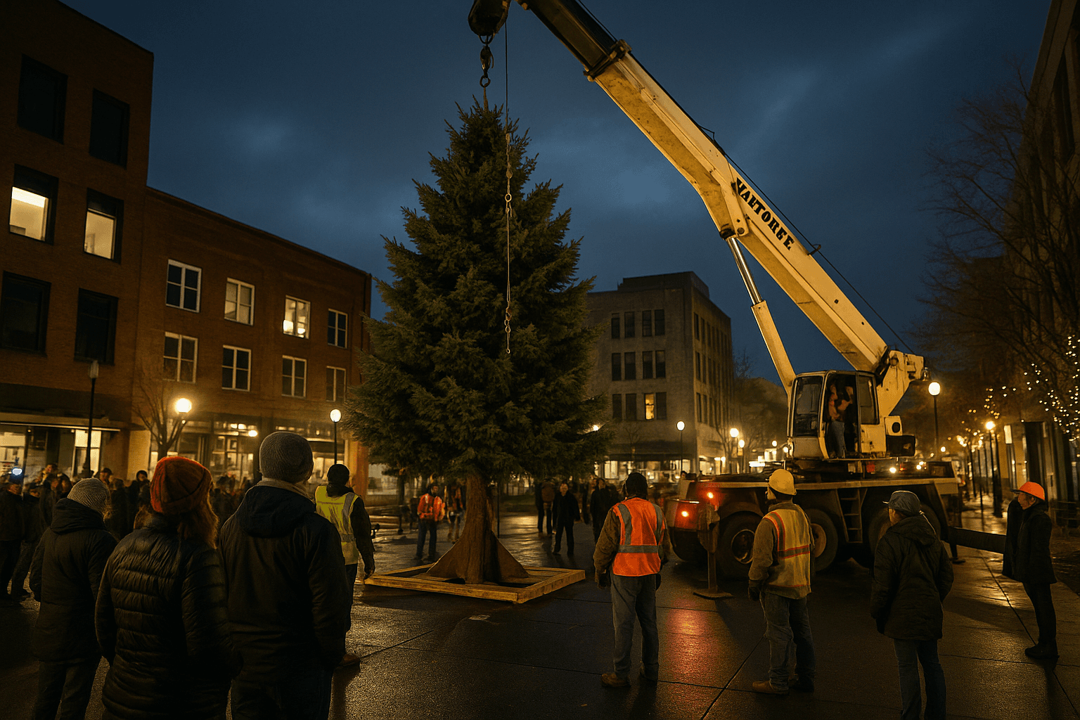 Community Gathers as Kesey Square Christmas Tree Is Raised, Downtown Prepares for Holiday Night Out