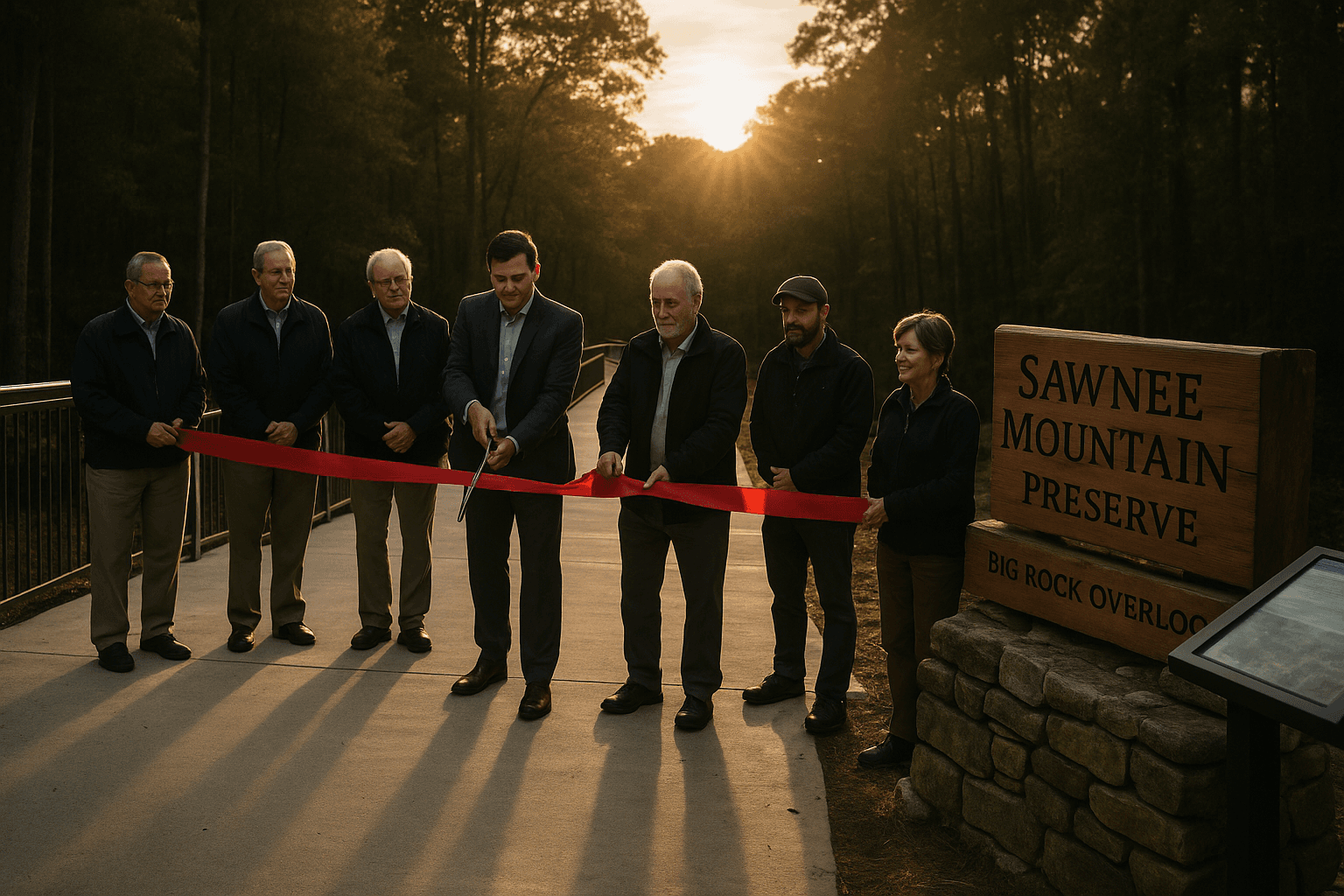 Forsyth County officials and Sawnee Mountain Foundation representatives gathered at Sawnee Mountain Preserve, 4075 Spot Road, on December 12 for a ribbon cutting that celebrated the completion of a major renovation project. County Parks and Recreation leaders described the work as an investment in park safety, accessibility and visitor experience for the regional attraction that draws more than 100,000 visitors a year.